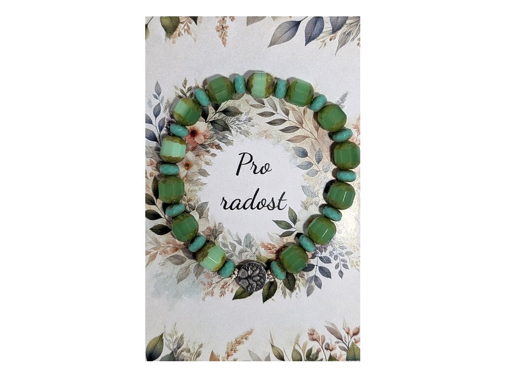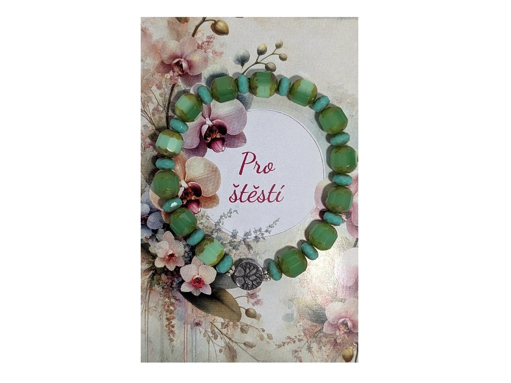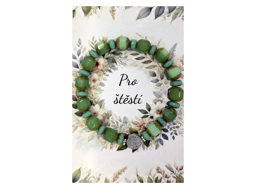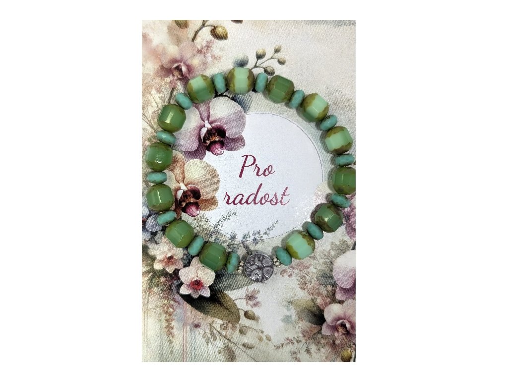 Náramek ze skleněných perel s motivem zeleného jaspisu Zelený jaspis - Pro radost / Pro štěstí